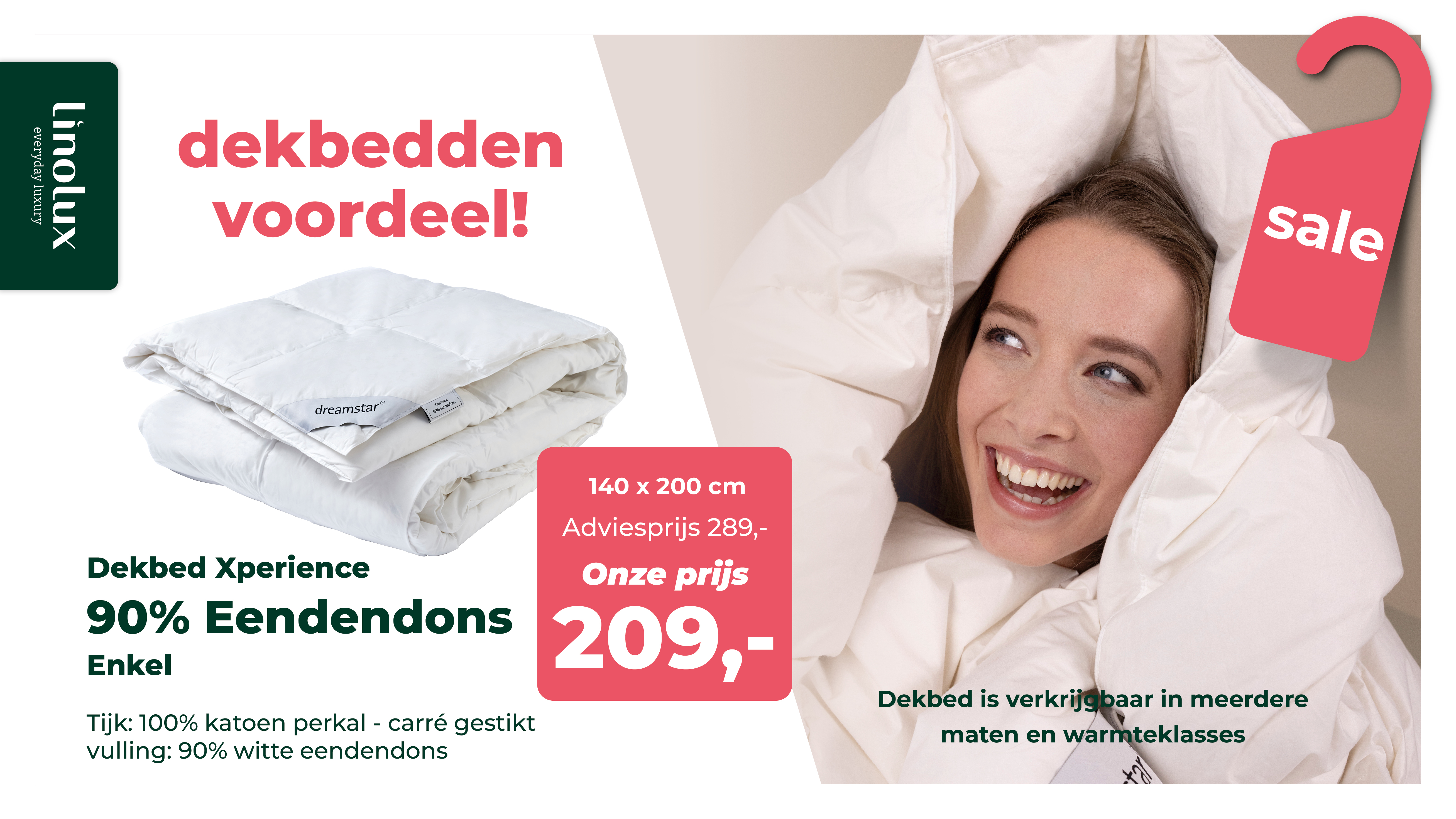 Op onze linnenafdeling voeren wij het winkelconcept Lin O Lux met een groot assortiment in hoeslakens, dekbedovertrekken, handdoeken etc.. Binnen dit concept voeren wij onder andere de volgende merken; Beddinghouse, VanDyck, Essenza, Livello en Dreamstar. Voor een persoonlijk advies wat betreft aankoop van hoofdkussens en dekbedden nodigen wij u graag uit in onze winkel.